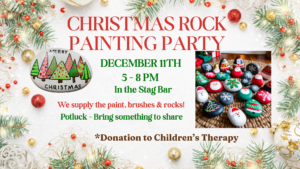 Christmas Rock Painting Party! Thursday, December 11 • 5–8 PMIn the Stag Bar Come hang out with fellow Elks and get creative painting rocks with fun Christmas themes!No experience needed — we’ll have supplies ready, bring your imagination and a smile. It’s a Potluck! Bring a dish to share while you paint and mingle. Donations accepted […]