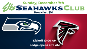 The Seahawks Club is back! $35 for the New Season! VS. Atlanta Falcons, Kickoff 10:00 AM Breakfast $10; come in and have breakfast with your fellow members. *You do not need to be in the Seahawks Club to come for breakfast. Hawks Club membership is $35 and can be paid in the Lounge or the […]