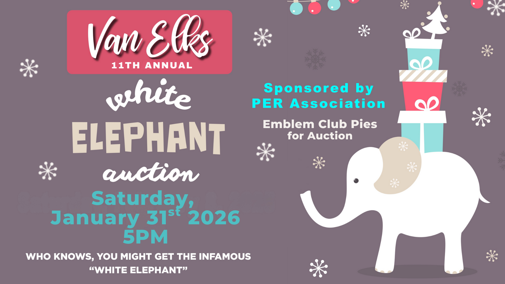 11th Annual PER White Elephant Auction 5PM